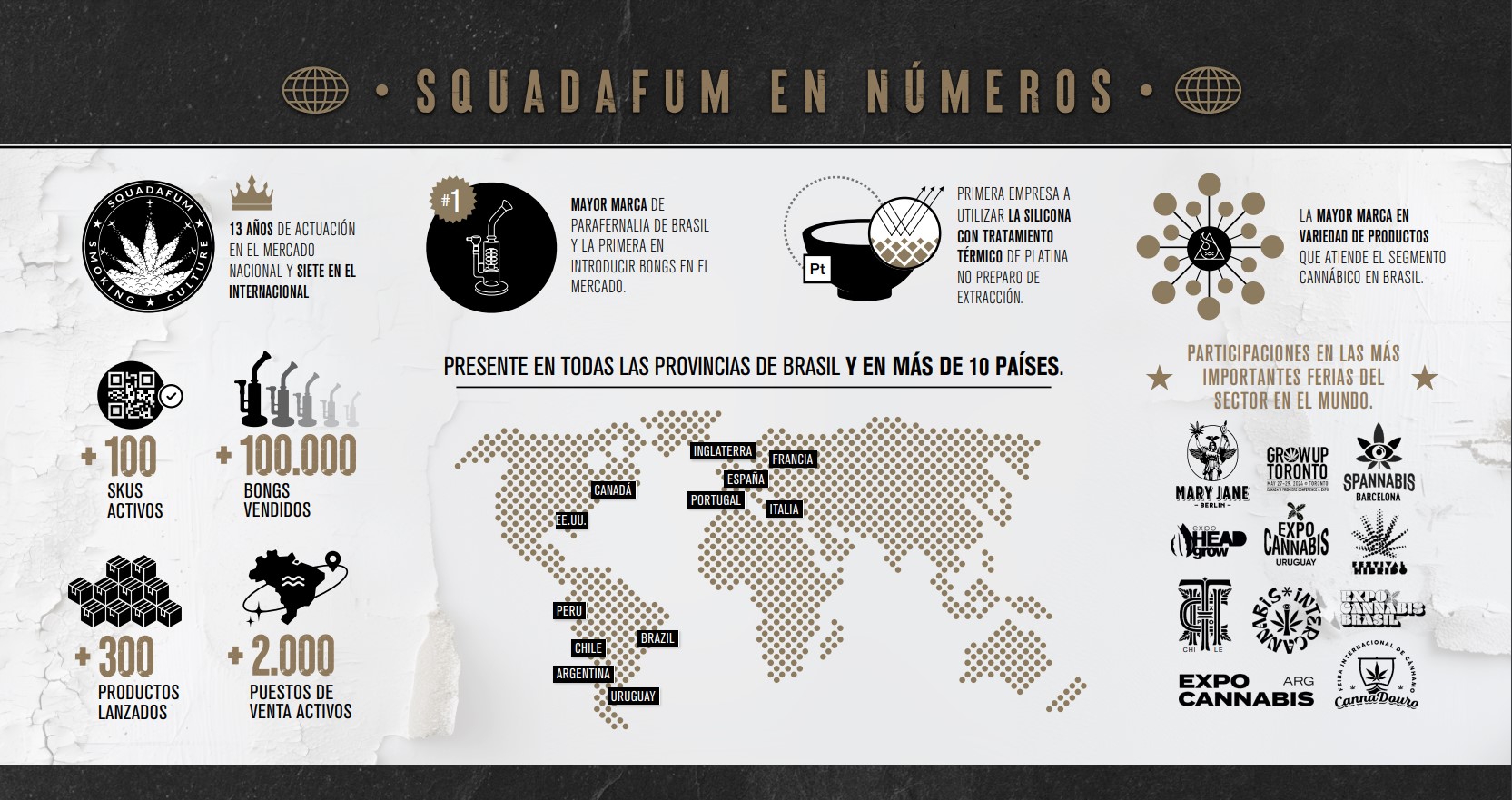 Squadafum es una empresa brasileña que actúa en el segmento de head shops y tabaquerías, ofreciendo una línea con más de 80 productos, desde el norte hasta el sur de Brasil, así como en América Latina, América del Norte y Europa.